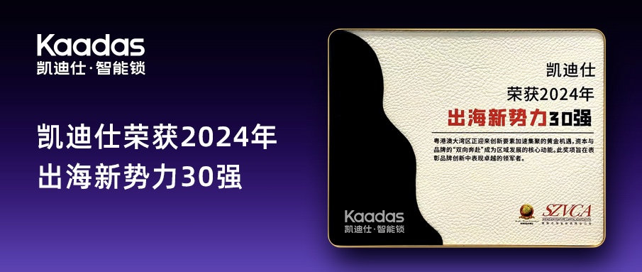 凱迪仕智能鎖榮獲“2024年出海新勢力30強(qiáng)”,以創(chuàng)新科技領(lǐng)航全球化征程!